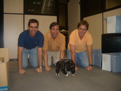 Hoy hemos ido Alejandro Alonso y yo a visitar a Andrés para ver la nueva versión de PuchoBot que está realizando para su trabajo de iniciación a la investigación. Está utilizando el mismo modelo de generador sinusoidal que estoy usando para mis robots modulares, pero aplicado a un cuadrúpedo. Los resultados que está obteniendo son muy prometedores. Y las secuencias de movimiento que ha generado son cachondas 🙂