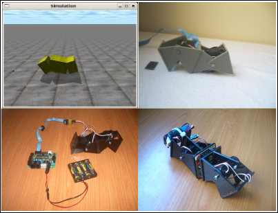 Para validar estos algoritmos, realicé simulaciones (entrada en el blog) y construà robots modulares controlados desde el PC (ver entrada sobre minicube-1)