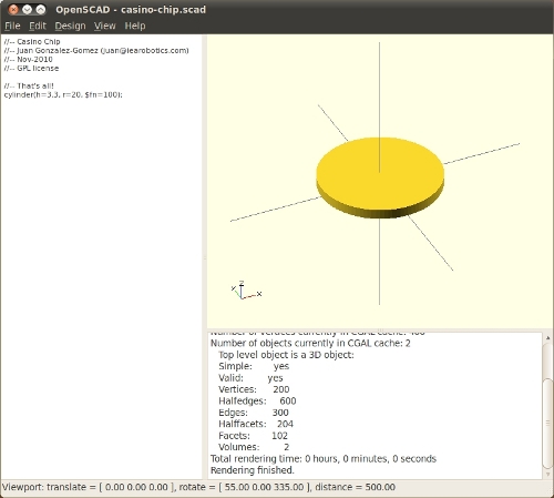 He diseñado estas fichas de casino en Openscad, para que puedan ser fabricadas en una impresora 3D. Anteriormente las tenía en Blender.