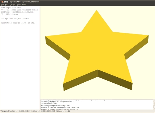 He diseñado esta estrella paramétrica en OpenScad. Cambiando unos pocos parámetros se obtienen estrellas con distinto número de puntas, aspecto y grosor.