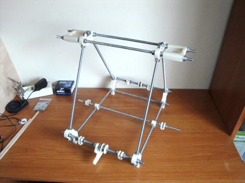 El estado de mi clon es el mostrado en esta foto: Ya están colocadas las varillas de la parte superior y apretadas las tuercas.