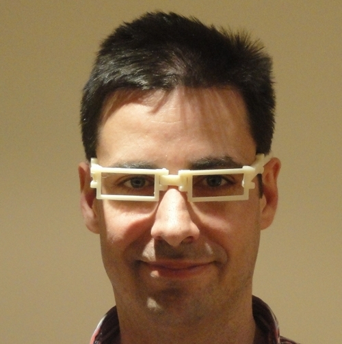 Os presento mi revolucionario diseño de gafas imprimibles! Colocando plástico translúcido de colores azul y rojo ya tienes tus gafas 3D.