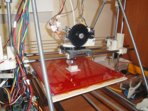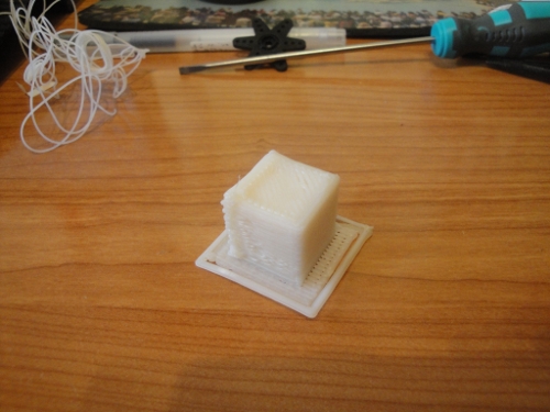 Hoy, 24 de Diciembre del 2011, a las 10h de la mañana, Mi clon R2D2 ha impreso su primera pieza! Ha sido un cubo de 2cm de arista. Aquí está la prueba: