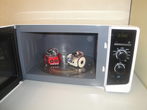 La idea la tomé de esta foto de la printrbot, en la que para ver lo pequeña que es, Brooks la metió en un micro-ondas. ¡Una idea genial!