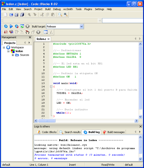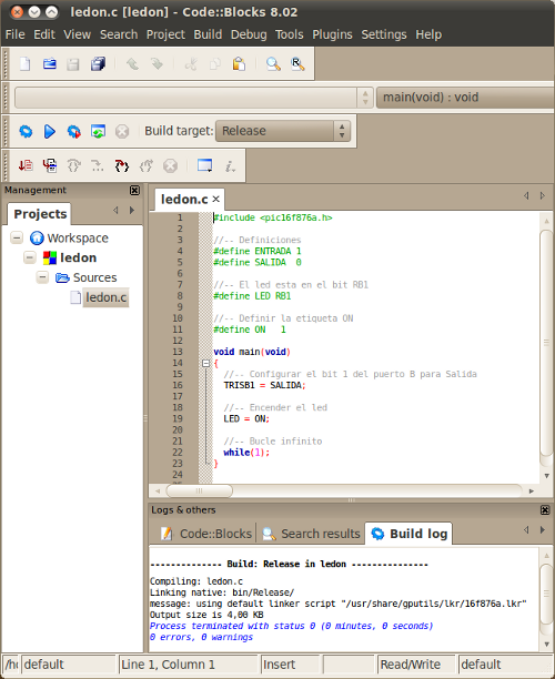 Entorno Code::Blocks para programación de microcontroladores PIC