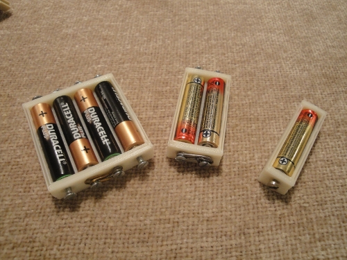 Ya está publicado en el wiki el portapilas parametrizado diseñado con Openscad. Los parámetros de entrada son el tipo de pila (AAA, AA, C o D), el número de pilas y el número de pilas en serie. A partir de esa información se genera el portapilas, que luego se exporta a STL y se “imprime”.