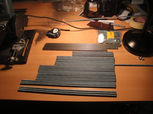Aquí están algunas de las varillas. Las roscadas se pueden comprar en cualquier ferretería. Las varilas lisas César las compró en RS. Yo no sabía que las allí las tenían.