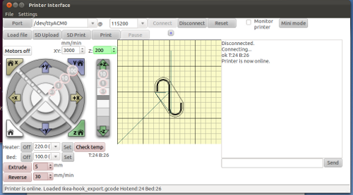 La guía incluye los ficheros con mi firmware calibrado, piezas de pruebas, el Pronterface + Skeinforge 41 y los perfiles que utilizo para imprimir. Los detalles están para el entorno que yo tengo: Ubuntu 11.10, pero Maese artorius y Mardan lo instalaron en Windows y les funcionó bien.