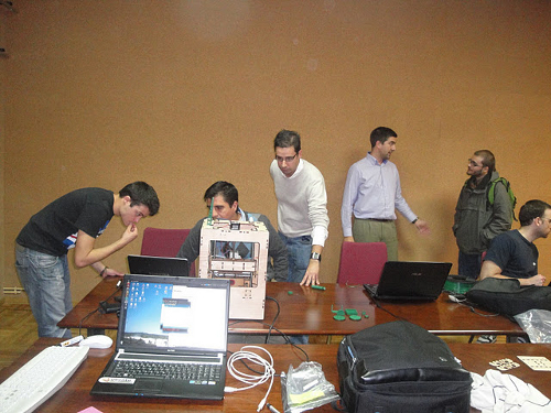 Durante el año pasado hemos creado la comunidad Plastic valley UC3M, que ahora cuenta con 2 impresoras Thing-o-matic y todas las repraps del proyecto Clon-wars que se están construyendo. Ahora la comunidad se ha ampliado con Plastic Valley DISAM-UPM.