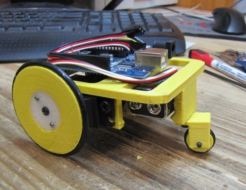Para hacer el montaje más entretenido y motivar a la gente, nos llevamos a UC3-PO (también conocida como PADRE), nuestra nueva thing-o-matic. SÃ, ya tenemos dos impresoras de Makerbot: MADRE y UC3-PO. Mientras montábamos estuvimos imprimiendo piezas del Miniskybot y el portatizas. También dimos micro-cursos de cómo manejar el programa OpenScad.