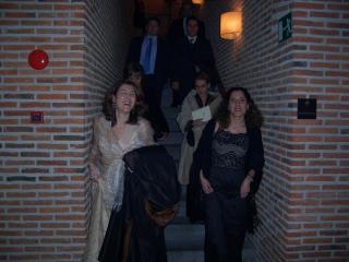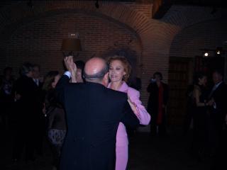 Después de la copiosa cena, es el momento de mover un poco el esqueleto. La gente va accediendo a la sala de fiestas. Vemos a Eladio, María Luisa, Mónica y Teresa.