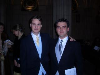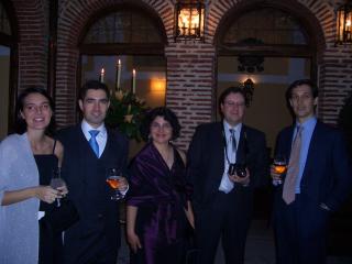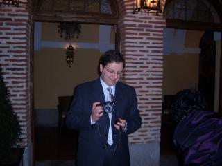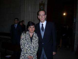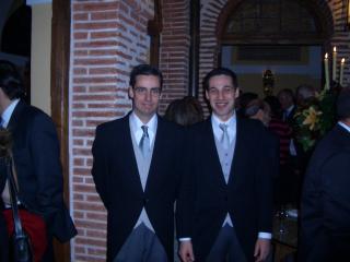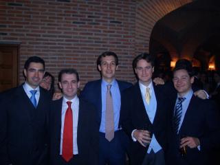 Nacho posa junto al Novio: "¡¡La noche acaba de empezar!!". Derecha: ¡¡Anda!! si también hay dos profesores de la Pontificia :-)