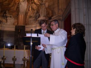El Novio, impaciente, espera a que llegue la Novia. Guillermo y Carolina, preparan las lecturas.