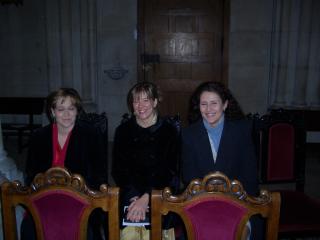 David, pendiente de la organización, posa con el Novio. ¿Quien está más nervioso de los dos?. Mientras tanto los invitados van llegando.... A la derecha vemos a Mercedes, Mónica y Cristina.
