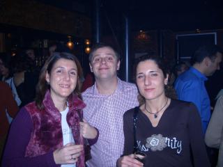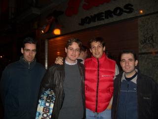 La cena termina... algunos se van a su casa. Vemos a la novia con Mercedes, David, Pablo y Jose Luis. En la foto de la Derecha estámos Arsenio, Ernesto y un servidor junto al Novio.