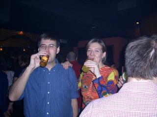 A última hora todos nos queríamos hacer fotos con los novios: a la izquierda Cristina y Mariano (¿Dónde están vuestras copas?) y a la derecha Mercedes y un servidor. Mirad cómo agarra Andrés a Susana: "Ya no tienes escapatoria!!" :-))