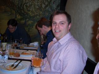 Aquí vemos a Nacho tomando un gran vaso de Sidra. Sí, parece fanta de naranja, pero es Sidra. Tambien podemos ver a Cristina, que se descojona y a Mariano, intentando disimular los efectos devastadores de la Sidra