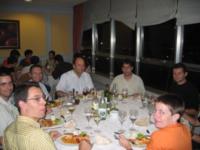 ...Y por la noche tuvimos la cena de gala en el Sporting Club Casino. Yo estuve en la mesa con (foto de la izquierda, en sentido horario partiendo desde mí) Jaime Villate, Alberto Valderruten, Jose Aguilar, no recuerdo el nombre de este ponente :-(, Pablo Boronat (que no sale en foto, pero sí su acompañanta) y Patricio García Báez. Siempre he sido un desastre para recordar los nombres...