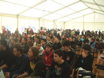 En la foto de la derecha se puede ver a los asistentes. Había bastante gente. Esto de la robótica cada vez gusta más ;-)
