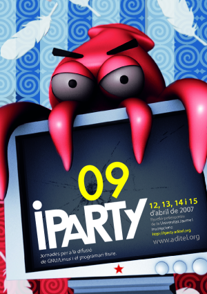 La iParty 9 se celebró en el campus de la Universidad Jaume I (UJI) en Castellón de la plana. Es una party diferente a las demás. Está centrada en el software libre y linux, con muchas actividades divulgativas y de formación técnica. Como amante de linux y de las tecnologías libre, me sentí como pez en el agua allí ;-) (O tal vez debería decir como pulpo en el mar :-P )
