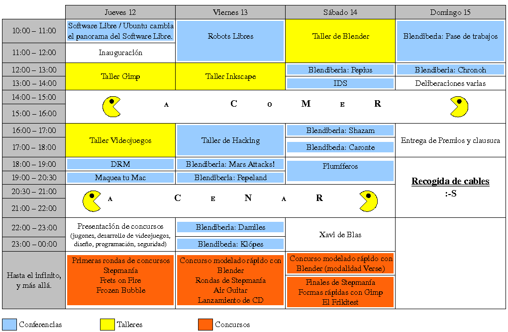A continuación fue el taller de programación de videojuegos en Fénix. Lo dió Pablo Navarro (panreyes) de PixJuegos. Asistí al taller por “curiosidad” , a ver de qué iba eso... y ¡¡me gustó muchísimo!!. Pablo nos enseño con un ejemplo muy didáctico cómo programar un juego “matamarcianos” utilizando la herramienta fénix, un compilador de un lenguaje para la programación de videojuegos, desarrollado con licencia GPL y disponible para entornos Linux y Windows.