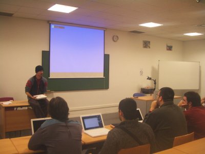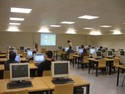 Me vinieron a buscar a la estación Gloria e Ignacio Gil. Dejamos la maleta y nos fuimos a la iparty. El centro de “operaciones base” estaba en el pabellón Polideportivo (foto de la izquierda). Los talleres se celebraron en una de las aulas de informática de la facultad de Ciencias Humanas y Sociales.