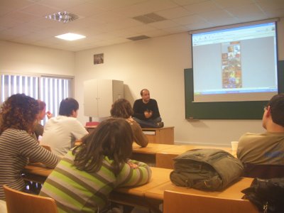 El siguiente ponente fue Daniel Martínez Lara (pepeland), un animador digital (foto de la izquierda). Como yo no estoy metido en el mundo de la animación, no lo conocía. Pero cuando empezó a hablar y a enseñar sus cortos, muchos de ellos sí que los había visto. Nos estuvo hablando sobre su trayectoria profesional. Fue una charla muy amena y divertida.
