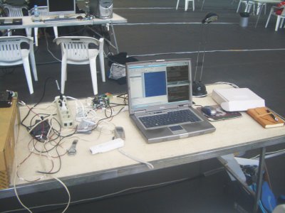 Primero puse en marcha el bluetooth de mi portátil. Aunque parezca mentira, nunca hasta entonces lo había usado. Buscando por internet me encontré con este maravilloso trabajo escrito por Álvaro del Castillo (ACS): Soporte Bluetooth en Linux 2.6. ¡Gracias Álvaro! Por cierto, que ACS y yo habíamos sido compañeros de Escuela en la UPM en Madrid. Me dejaron un mando de la Wii y siguiendo las instrucciones de ese documento conseguí conectarme a él y sacar su dirección.