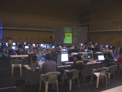 Esa noche, sobre las 2 de la madrugada, llegó Xavier de Blas. El sábado por la noche tenía su LinuxShow. Sobre las 2 y media nos fuimos al hotel a dormir.