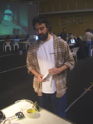 Durante la campus party 2006 hicimos el proyecto “el faro de la campus”. Empezamos controlando el encendido y apagado de un flexo desde un programa en C en el portátil y acabamos montando 7 faros controlados desde internet :-) Ahora lo que quería hacer es controlar la luz con el mando de la wii de dos maneras diferentes: una apretando los botos y la otra de forma gestual, levantando y bajando el brazo.
