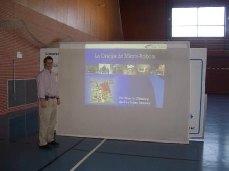 Finalmente, se hace una demostración del robot de exploración Joshua. Se telecontrola desde el PC y dispone de una cámara inalámbrica que envía las imágenes al operador. Manejarlo es como jugar al doom pero en directo ;-)