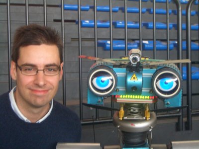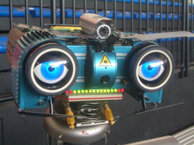 A Jose Luís y Seguritrón no los veís desde su participación en Campus Party 2005. En la izquierda estamos posando para tener una foto oficial ;-) En la derecha se puede ver en detalle la cara de Seguritrón. ¡Espectacular!