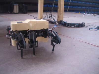 A continuación nos centramos en los robots articulados, que tienen una mecánica un poco más compleja y en los que aparece el problema de la coordinación. ¿Cómo coordinar las diferentes articulaciones para conseguir que el robot se mueva?. Como ejemplo se muestra a Melanie III, un robot hexápodo de tres grados de libertado por pata y más de 30 sensores. La coordinación de las articulaciones se resuelve mediante programación gestual o generación de trayectorias a partir de ondas.