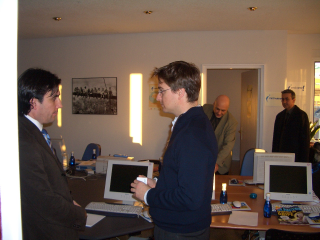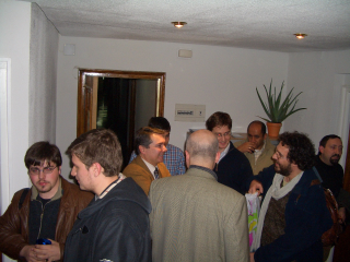 Andrés, hablando con los organizadores y otros ponentes. |