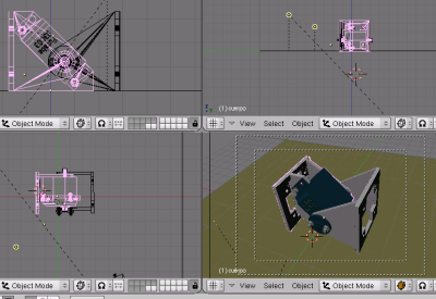 La charla se cambió por la actual: “Robótica y Linux: Cómo se hizo Cube Revolutions”. En vez hacer una demo de todos los robots, mostré el software libre empleado en el diseño y control de Cube Revolutions. Las piezas se diseñaron con el programa QCAD (foto de la izquierda) y los modelos 3D con Blender (foto de la derecha)