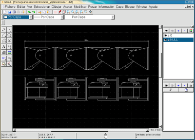 Aplicación libre QCAD, para diseño en 2D. Disponible en Debian (apt-get install qcad)