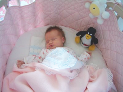 La charla de “Robótica y Linux” es de carácter divulgativo, en la que Andrés Prieto-Moreno y yo (Juan González) hacemos demostraciones de diferentes robots y cómo los controlamos desde máquinas Linux. Sin embargo, esta vez Andrés no pudo asistir porque acababa de ser padre. Su hija, aunque recién nacida, ya se está familiarizando con el software libre: