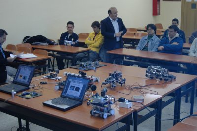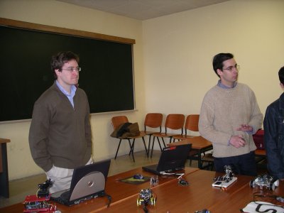 La charla se dió el sábado 9 de Abril, en la Univesidad Pontificia de Salamanca en Madrid (UPSAM). Yo acaba de llegar de la Robolid05, donde había dado otra charla junto con Alejandro Alonso. Como el mundo es un pañuelo, conocí a Fernando Remiro en Valladolid y resulta que era uno de los profesores que iban a asistir a las sesiones de robótica en la UPSAM :-)