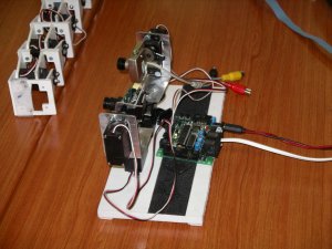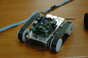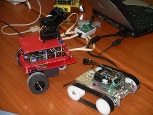 Demostraciones en vivo de diferentes robots, con la idea de motivar. Se comienza por el más sencillo de todos, el Skybot, un robot seguidor de líneas muy simple que sirve para iniciarse en el mundo de la robótica. Hecho con piezas de PVC, es muy fácil de construir, utilizando cualquier otro material: madera, plásticos, aluminio, etc. Utiliza las tarjetas Skypic y CT293 y como motores se emplean dos servos Futaba 3003 “trucados”. El robot “los ojos” es un ejemplo de un robot articulado controlado desde el PC. Tiene dos minicámaras con dos grados de libertad cada una. Se pueden grabar secuencias de movimiento y actuar sobre las cámaras por medio de un canvas. Los siguientes tres robots están basados en modelos animales. Uno es Cube Revolutions, un robot gusano que es capaz de moverse en línea recta y adoptar diferentes formas, parecido a como se mueven los gusanos de seda. Es un robot de investigación. Otro es la hormiga “Benita”, un robot hexápodo, con dos servos por pata, realizado en el año 1998 que demuestra que es posible hacer robots baratos y robustos. El tercero es PuchoBot, un perro robot, con 3 articulaciones por patas. Puede funcionar tanto en modo autónomo como conectado al PC. Finalmente se hace una demostración del robot Observer, desarrolado en el Club de Robótica-Mecatrónica de la UAM. Un robot telecontrolador desde el PC a través de Radio, que lleva incorporado una minicámára.
