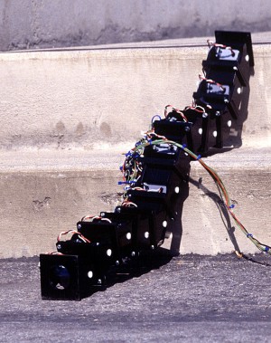 En esta foto puedes ver un robot serpiente modular, que está bajando unas escaleras, desarrollado en el Palo Alto Research Center PARC: