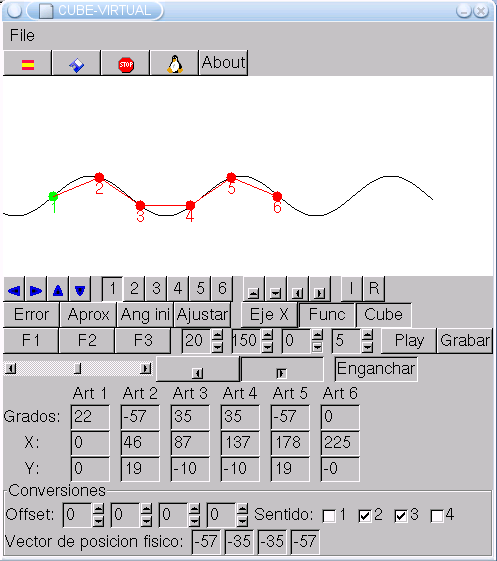 Con el programa cube-virtual se pueden generar secuencias de movimiento automáticamente, utilizando un modelo de propagación de ondas sinusoidales. Aquí puedes ver un pantallazo: