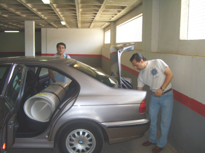 Sin embargo... el efecto Apolo 13 todavía no se había acabado. Una vez que habíamos recogido todo el material. Todos los portátiles, las herramientas y ya estábamos listos para volver al hotel... al colocar la última bolsa en el maletero del coche, dejamos las llaves dentro y cerramos la puerta... Nos quedamos compuestos y sin coche, con todas las cosas en su interior, salvo nuestras acreditaciones. El coche estaba cerrado con las lleves en el maletero. Imposible abrirlo... :-(