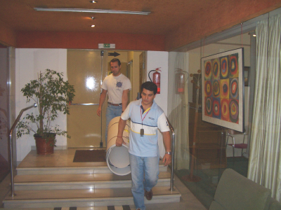 Hubo que llamar a una grúa para retirar el coche y dejarlo cerca del hotel. Alejandro consigó localizar a su hermano para que recogiese la llave de repuesto y quedase con Andrés para traerla al día siguiente, lunes, a la hora de comer. Andrés era nuestro salvador. Vendría con el portátil y las llaves del coche, además de con los 53 robots del taller. Sin duda, que todos estos efectos “Apolo 13” estaban ocasionados por el cansancio acumulado por los preparativos de la CampusBot. Llevábamos mucho tiempo durmiendo poco.
