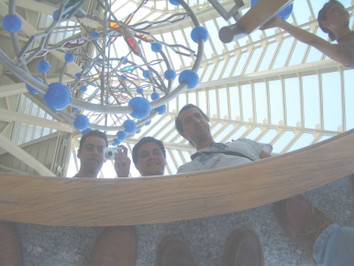 Entramos en el museo de las ciencias. Unas de las cosas que llaman la atención es una enorme cadena de ADN que va desde el suelo hasta el techo. En la parte inferior hay un espejo que permite verla desde otra perspectiva (foto de la izquierda). Justo en frente había una cartel que decía “taller”. No pude por menos de hacerme una foto (derecha). El Taller de robótica estaba a punto de comenzar!! :-)