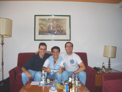 Sin embargo, esto sólo era el comienzo del “efecto Apolo 13”, una serie de sucesos que nos pondrían las cosas cuesta arriba... Salimos de la Feria y nos fuimos al hotel Feria, donde se alojaba Alejandro. Al sacar las maletas nos dimos cuenta de que su portátil no aparecía. El portátil en el que estaba TODO. Toda la información de organización de la CampusBot. Todos los correos. Todos los teléfonos de contacto. Todos los horarios... y lo peor es que, haciendo memoria, Alejandro tuvo un “flash” y supo dónde se lo había dejado: en el garaje de su casa. Lo dejó apoyado y se le olvidó meterlo en el coche... No sólo no teníamos el portátil, era muy probable que no lo volviésemos a ver... :-(