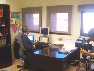 Por último, grabaron a D. Miguel Ángel Salichs en su despacho (foto de la derecha). Y yo me hice una foto con él :-) (izquierda)