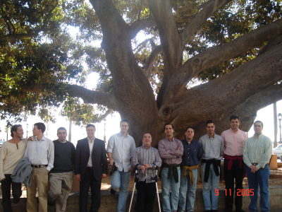 Al terminar la primera sesión nos fuimos a comer a la facultad de económicas, no sin antes hacer una parada técnica para sacarnos otra foto de familia :-) (Foto de la izquierda). De izquierda a derecha y de arriba abajo estamos: Alejandro Alonso, Juan González, Daniel Berdugo, Jesús, Francisco Cordón, Jose Pichardo, Ricardo Gomez, Arturo Morgado, Daniel Quintero, Julio Pastor, Andrés Prieto-Moreno y Óscar González.