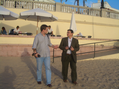 Después del café nada mejor que un paseo por la playa, para charlar tranquilamente y contar las batallas y aventuras de las jornadas. En la izquierda están Arturo Morgado y Andrés. En la derecha estamos Ricardo y yo (Juan).