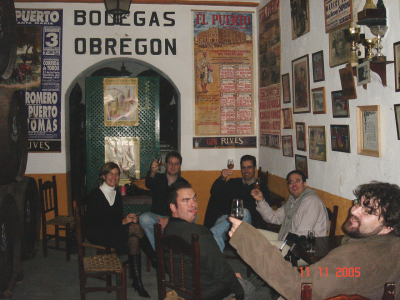 En el puerto nos estaban esperando Lourdes, Paco, Dani y Jose Ángel. Fuimos a una bodeguita del puerto, Bodegas Obregón, donde estuvimos tomando unos vinos dulces buenísimos (foto de la izquierda). Andrés, Ricardo y yo nos llevamos unas garrafitas.