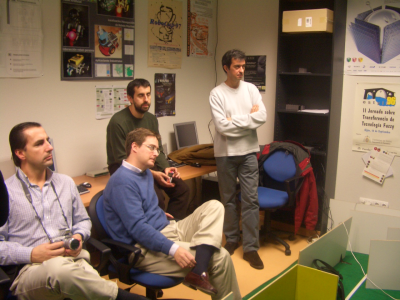 Fue una visita muy interesante. Yo ya concía a Vicente Matellán, pero hacía mucho tiempo que no nos veíamos. Al que no conocía era a Jose María Cañas. Durante la comida estuvimos hablando sobre nuestros trabajos de robótica y quedé con él para venir un día con más calma a la Rey Juan Carlos, tomarnos un café y enseñarles a Cube Revolutions. Después de cruzarnos algunos emails, me invitaron a dar una charla a los alumnos de doctorado, en Enero de 2006. [Más información]